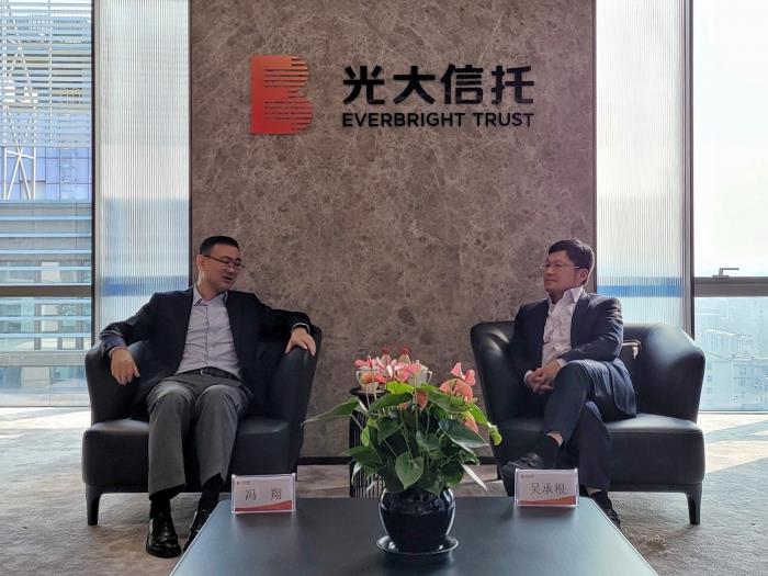 近日,光大信托党委书记冯翔在京会见浙商证券董事长吴承根一行。双方进行了深入探讨与交流,并在共同服务国家长三角战略、进一步加强资本市场合作、推动高质量转型发展等方面达成共识。