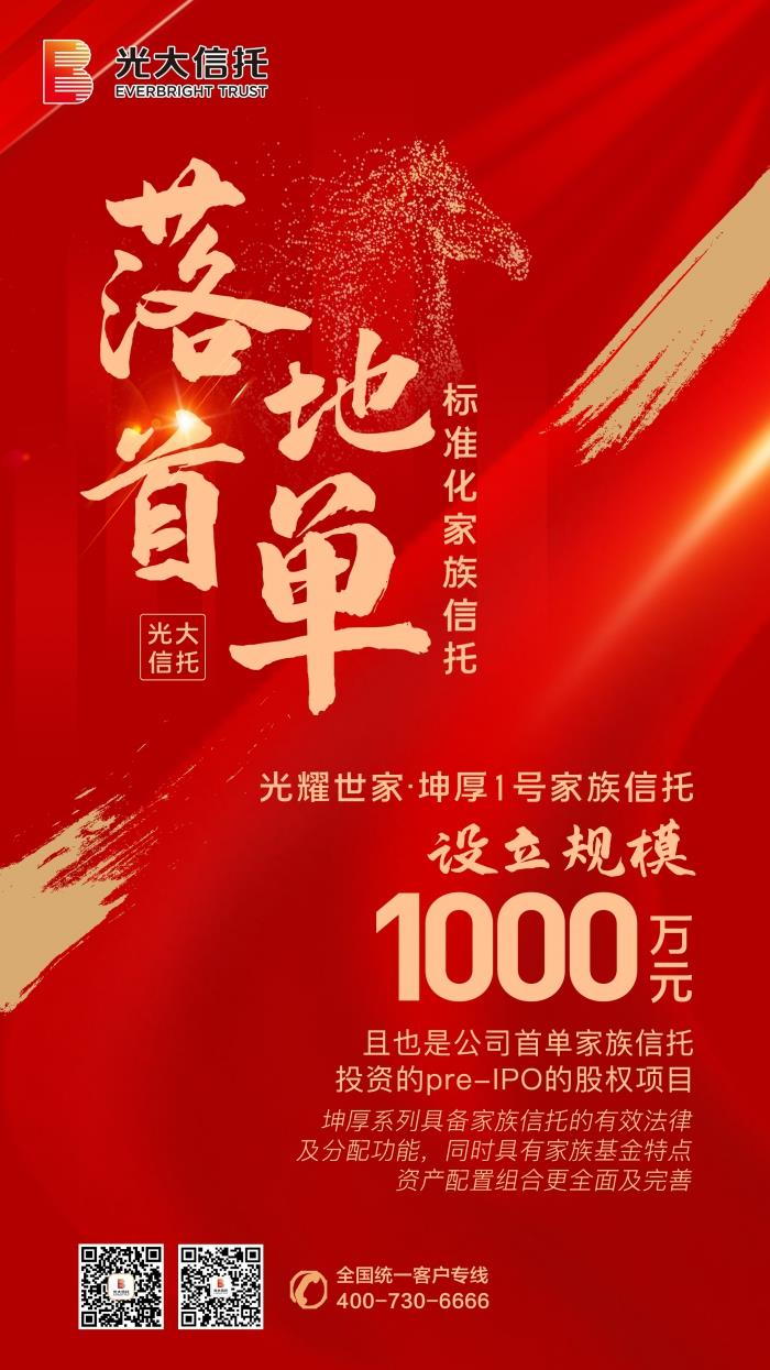 2021年4月,光大信托落地公司首单家族信托投资Pre-IPO股权项目的标准化家族信托——光耀世家·坤厚1号家族信托。光耀世家·坤厚1号家族信托是一个创新模式下的标准化家族信托,属于真正的权益投资模式,而非传统家族信托项目的固定收益模式。该家族信托项目最终持有的资产为未上市公司股权,被投资公司目前在Pre-IPO轮次,之后拟在科创板或香港联交所上市。外部律师认为,“与传统家族信托产品相比,光耀世家·坤厚1号家族信托在信托财产的管理运用方面有所创新,在权益型投资方面进行了突破性尝试,充分展现了受托人光大信托卓越的主动管理能力,顺应了‘回归信托本源’的监管要求。该家族信托委托人仅为一人,信托资金来源清晰,不存在代持或集中多人资金等行为,不会导致被投资企业出现复杂的股权结构,符合有关‘发行人股权清晰’的监管规定”。