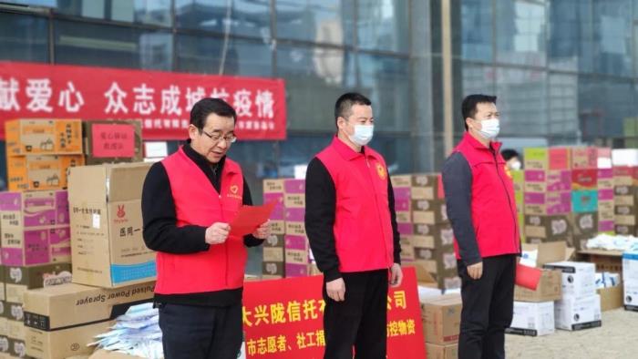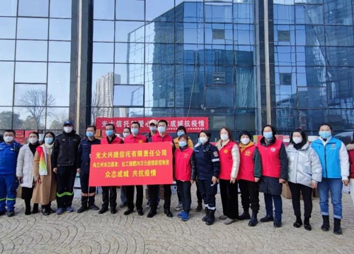 2021年10月甘肃省兰州市暴发新一轮新冠疫情,面对复杂严峻的疫情防控工作,全市2000余个志愿服务组织、50余个社工机构的近7万志愿者和工作人员默默奉献、连续奋战在抗疫第一线。然而随着防控工作的深入,相关防护物资出现紧缺,志愿者自身安全和生活无法得到保障。光大信托在集团和公司党委领导下,积极履行社会责任,迅速协调“光信善·大爱无疆慈善信托”资金20万元,于48小时内捐赠至兰州市慈善总会。