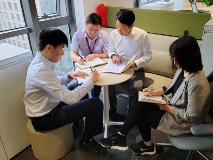 资产管理部全部门共四名员工,在部门负责人刘帅的带领下,一直保持着共同学习、共同探讨、共同进步的工作模式。 在轻松的氛围下,大家对新政策中的创新风险资产处置模式,多项新的处置思路和最新的相关政策法规进行了常态化解读后,每个人都提出了自己的观点、见解。真理越辩越明,思维的火花不断碰撞,在有相关政策保驾护航后,大家更加底气十足、信心百倍,对部门所负责相关风险案件进行了全面梳理,准确的找出了最佳化解方案,以最快的时间形成了研究报告。