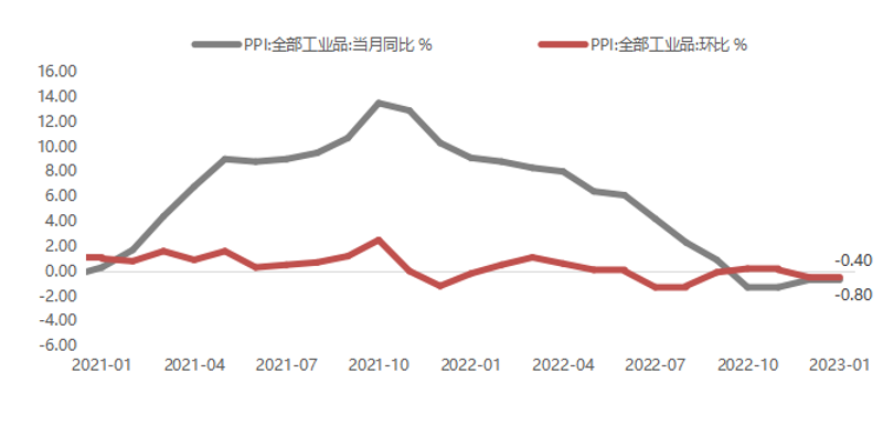 PPI同步环比继续收缩。其中,生产资料PPI环比跌幅略有收窄,生活资料PPI环比跌幅走阔。PPI本月环比收缩主因国内国际能源品价格下行。一是海外石油价格拖累下,石油化工产业链相关价格整体回调;二是中游制造行业因成本降低、下游需求走弱,价格也逐步下行;三是国内煤炭价格下行带动高耗煤产业价格调整。我们预计2月PPI同比降幅将走阔至-1.2%左右。