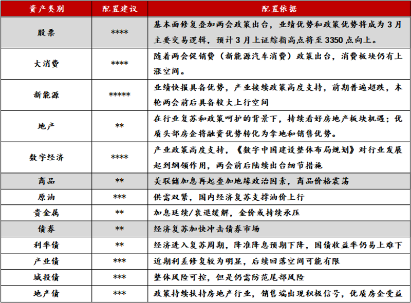 3月各类资产配置展望