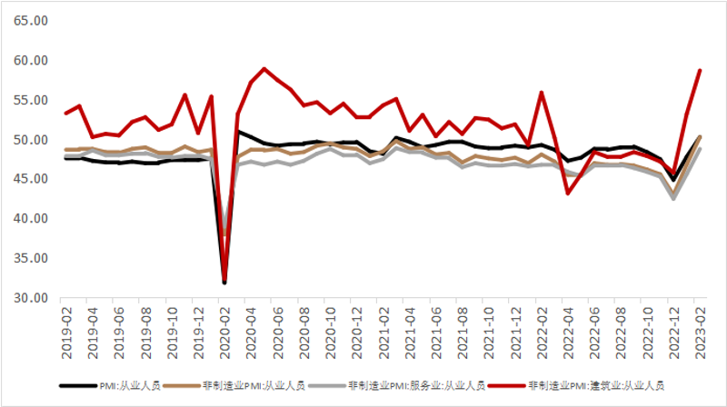 2月是宏观数据的空档期,失业率数值尚未公开,但从PMI角度看,多项就业指标有所抬升。这意味着,失业率大概率将有所收缩,而就业指标的回暖也指向后续需求回升将有较为坚实的基础。