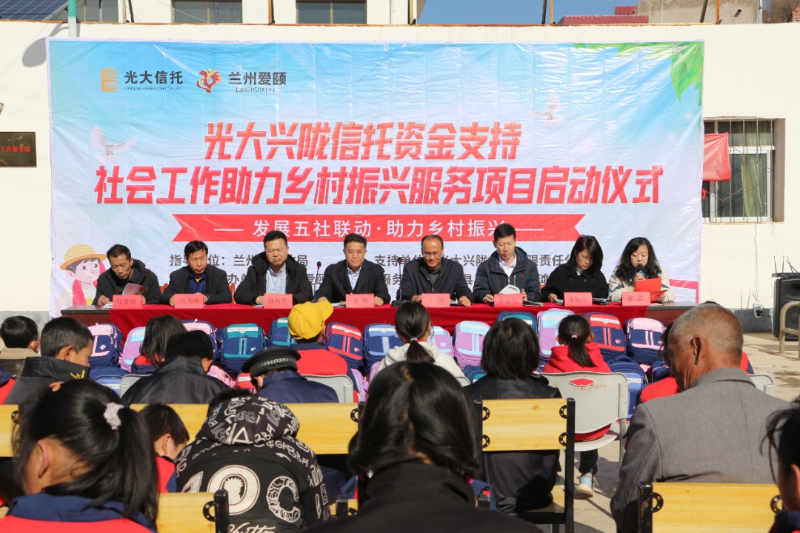 3月13日,光大信托以慈善信托支持旋马滩村留守儿童项目启动仪式在甘肃省榆中县马坡乡旋马滩村村委广场举行,公司研究总监翟亮,慈善办主任乔方亮现场参加启动仪式。兰州市民政局党组成员、副局长王垚,兰州市民政局慈社科长孙天平,儿童福利科长张晓岚,马坡乡政府武装部长刘伟清,旋马滩村社留守儿童,部分村民代表参加了启动仪式。