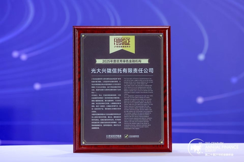 光大兴陇信托荣膺2025年度21世纪金融竞争力“年度优秀绿色金融机构”称号